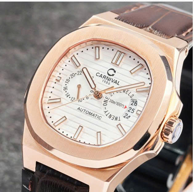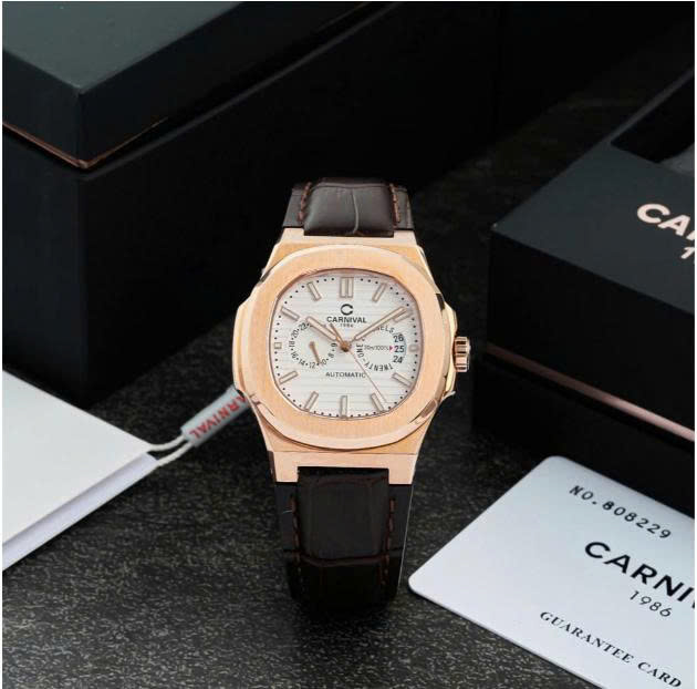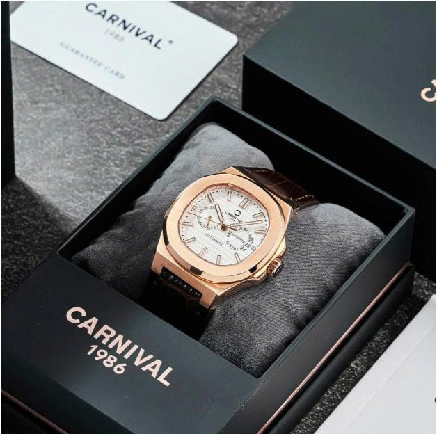 Điểm mạnh của Carnival 8158G-VH-DD-T nằm ở bộ máy automatic (cơ tự động), có khả năng lên cót qua chuyển động cổ tay – hoàn toàn không cần thay pin. Bộ máy đến từ các nhà sản xuất uy tín như Miyota (Nhật Bản) hoặc tương đương Thụy Sĩ, đảm bảo vận hành ổn định, chính xác.