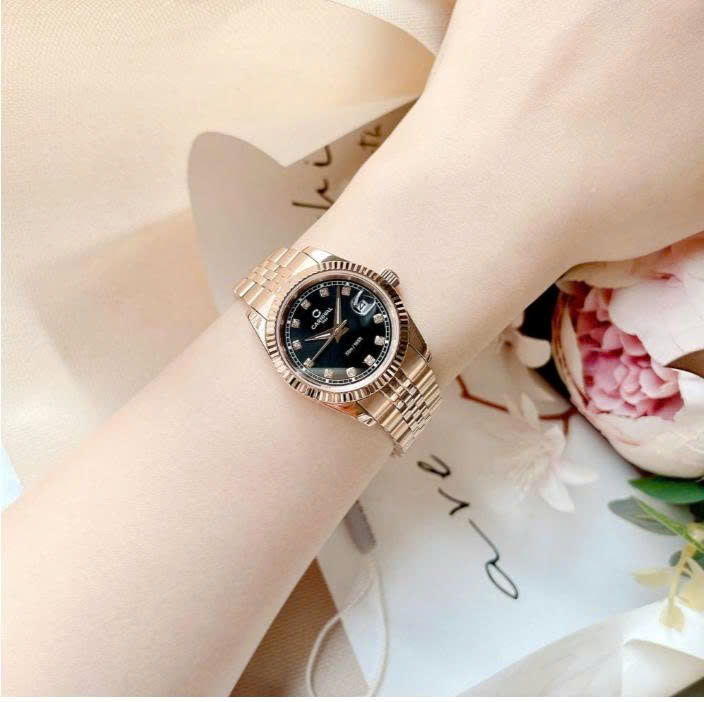 Điểm đầu tiên gây ấn tượng mạnh ở sản phẩm này chính là lựa chọn chất liệu và phối màu. Toàn bộ vỏ và dây đồng hồ được làm từ thép không gỉ cao cấp, được mạ vàng hồng sáng bóng. Lớp mạ PVD giúp chiếc đồng hồ chống bám màu, không han gỉ – giữ được vẻ đẹp như mới dài lâu, kể cả khi sử dụng thường xuyên.
