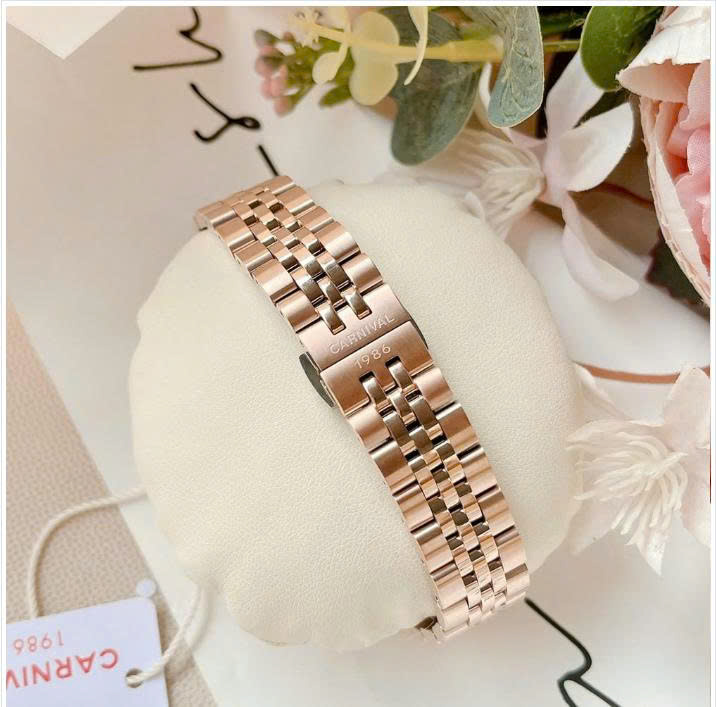 Dễ phối đồ cũng là điểm mạnh của sản phẩm. Từ trang phục công sở lịch thiệp đến đầm dạ tiệc yêu kiều hay set đồ dạo phố nhẹ nhàng, đồng hồ Carnival vàng hồng luôn đồng hành một cách tinh tế và nâng tầm phong cách tổng thể.