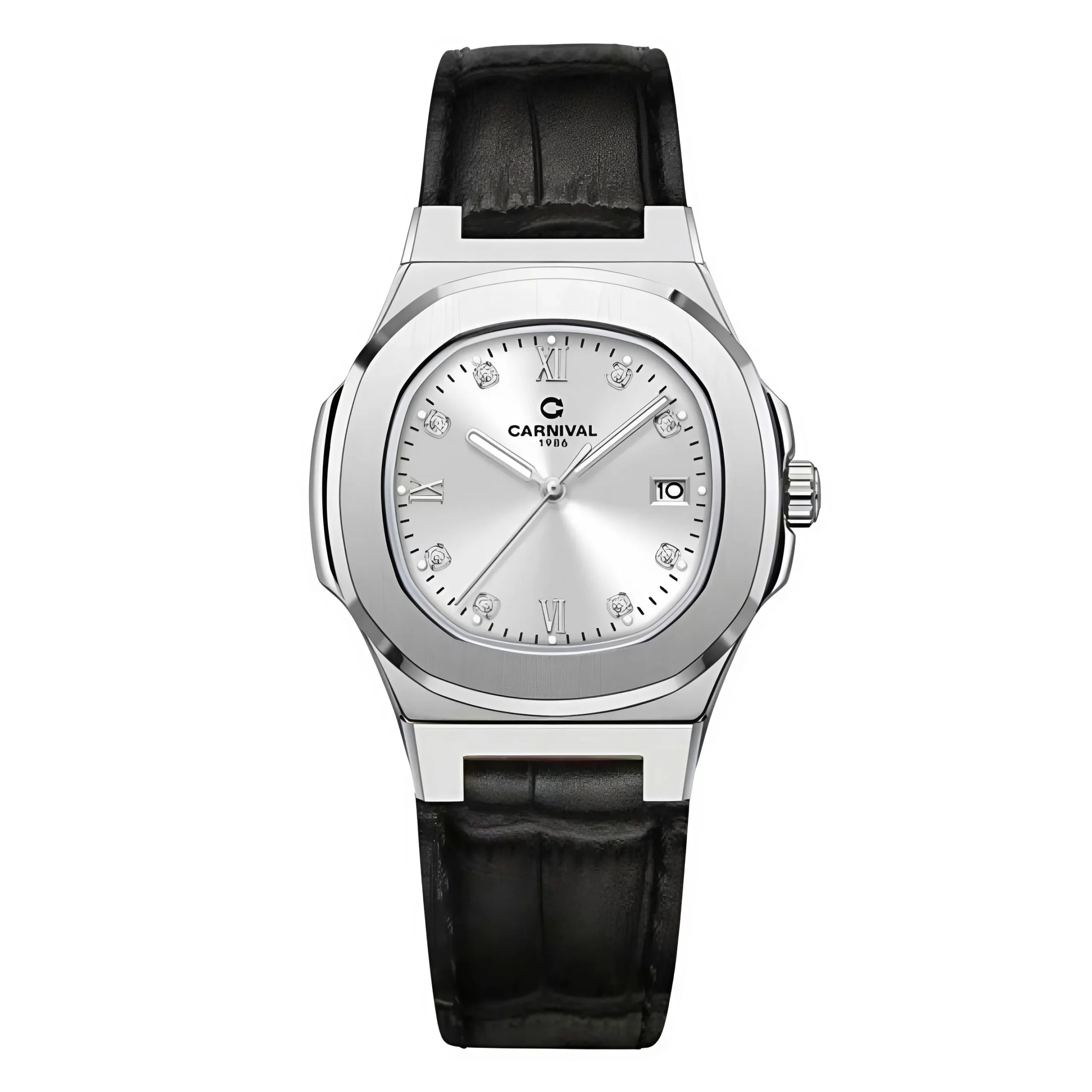 Về chất liệu, Carnival sử dụng vỏ bằng thép không gỉ 316L – chất liệu cao cấp trong ngành đồng hồ, cho khả năng chống ăn mòn vượt trội và đảm bảo độ bền theo năm tháng. Mặt kính sapphire nguyên khối tăng khả năng chống trầy xước, giữ đồng hồ luôn sáng bóng dù bạn sử dụng hàng ngày. Dây đeo có hai lựa chọn: dây da cao cấp tạo cảm giác mềm mại, nhẹ nhàng hoặc dây kim loại cứng cáp và hiện đại – phù hợp với đa dạng phong cách và sở thích cá nhân.